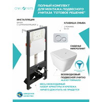 Купить Инсталляция с унитазом комплект 4 в 1 OWL 1975 Alexo Tornado безободковый+IN-005.05 кнопка хром+IN-500G с доставкой по всей России.