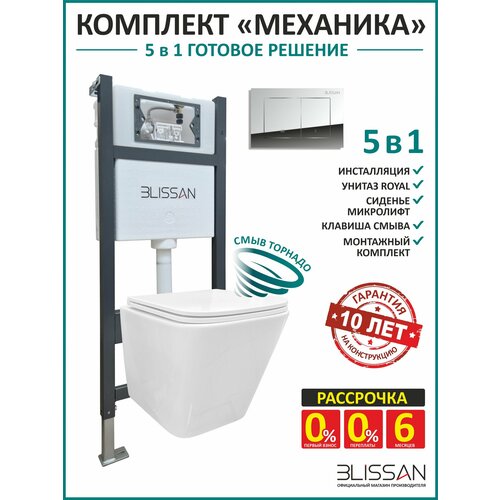 Купить Инсталляция с унитазом комплект 5 в 1 Blissan BL-IME-RO-4102-CH унитаз подвесной Royal c сиденьем микролифт кнопка хром механика с доставкой по всей России.