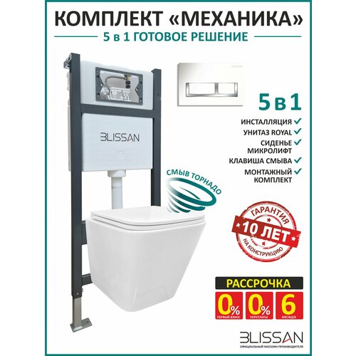 Инсталляция с унитазом комплект 5 в 1 Blissan BL-IME-RO-4103-WH унитаз подвесной Royal c сиденьем микролифт кнопка белая механика: сравнение цен, характеристики, фото, актуальное наличие и цены.