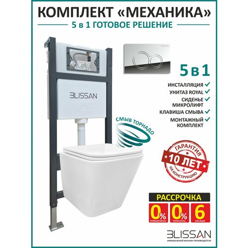 Инсталляция с унитазом комплект 5 в 1 Blissan BL-IME-RO-4108-CH унитаз подвесной Royal c сиденьем микролифт кнопка хром механика: сравнение цен, характеристики, фото, актуальное наличие и цены.