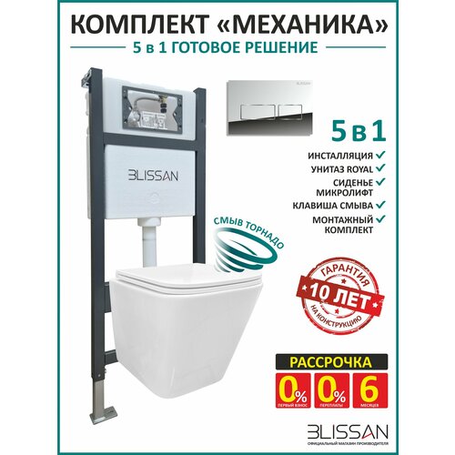 Инсталляция с унитазом комплект 5 в 1 Blissan BL-IME-RO-4111-CH унитаз подвесной Royal c сиденьем микролифт кнопка хром механика: сравнение цен, характеристики, фото, актуальное наличие и цены.