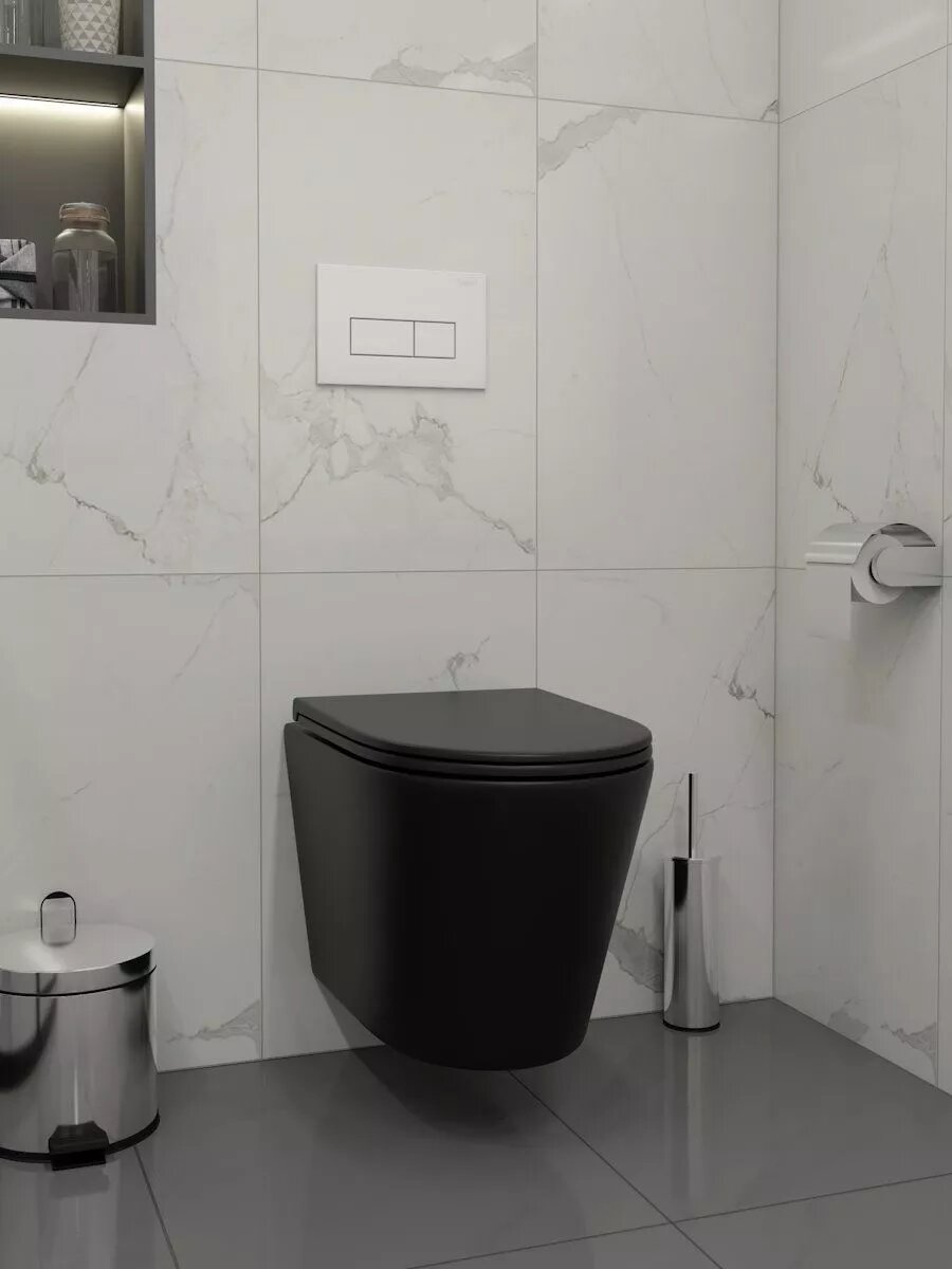 Купить Инсталляция с унитазом комплект 5 в 1 Teymi унитаз подвесной безободковый черный Solli Black кнопка белая F08917 с доставкой по всей России.
