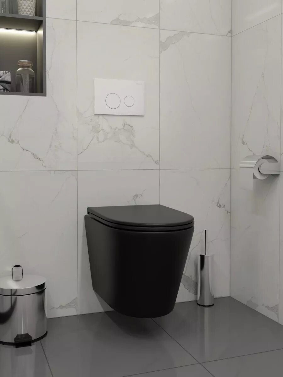 Купить Инсталляция с унитазом комплект 5 в 1 Teymi унитаз подвесной безободковый черный Solli Black кнопка белая F08918 с доставкой по всей России.