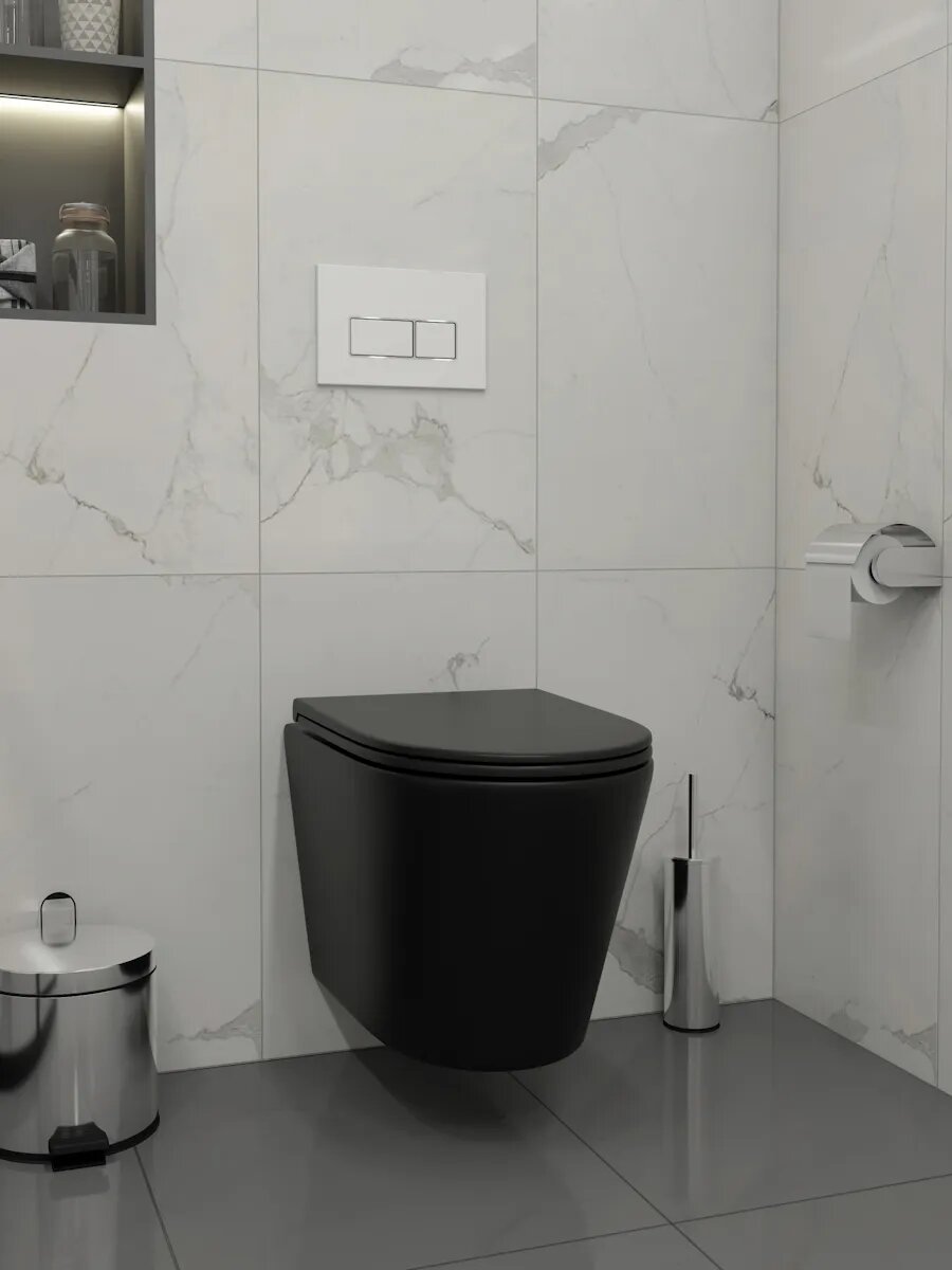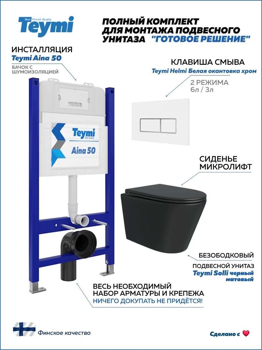 Купить Инсталляция с унитазом комплект 5 в 1 Teymi унитаз подвесной безободковый черный Solli Black кнопка белая / хром F13527 с доставкой по всей России.