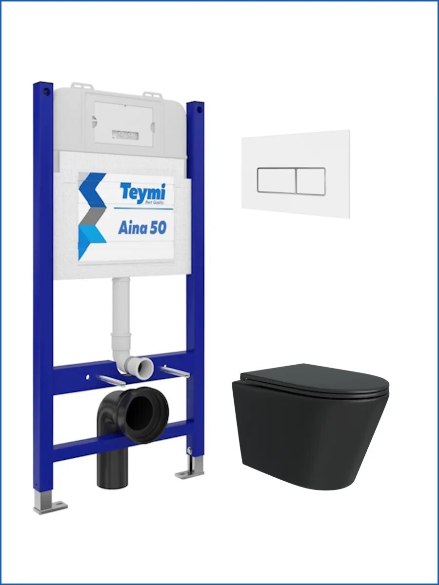 Инсталляция с унитазом комплект 5 в 1 Teymi унитаз подвесной безободковый черный Solli Black кнопка белая / хром F13527: сравнение цен, характеристики, фото, актуальное наличие и цены.