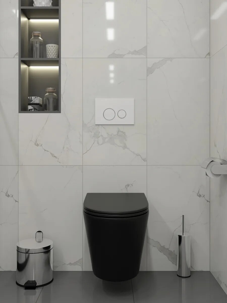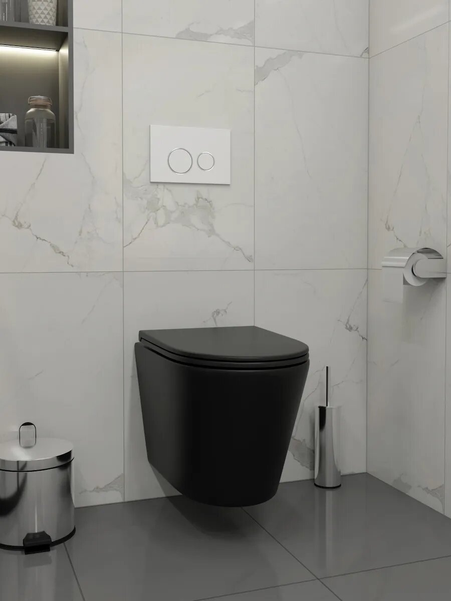 Купить Инсталляция с унитазом комплект 5 в 1 Teymi унитаз подвесной безободковый черный Solli Black кнопка белая / хром F13530 с доставкой по всей России.