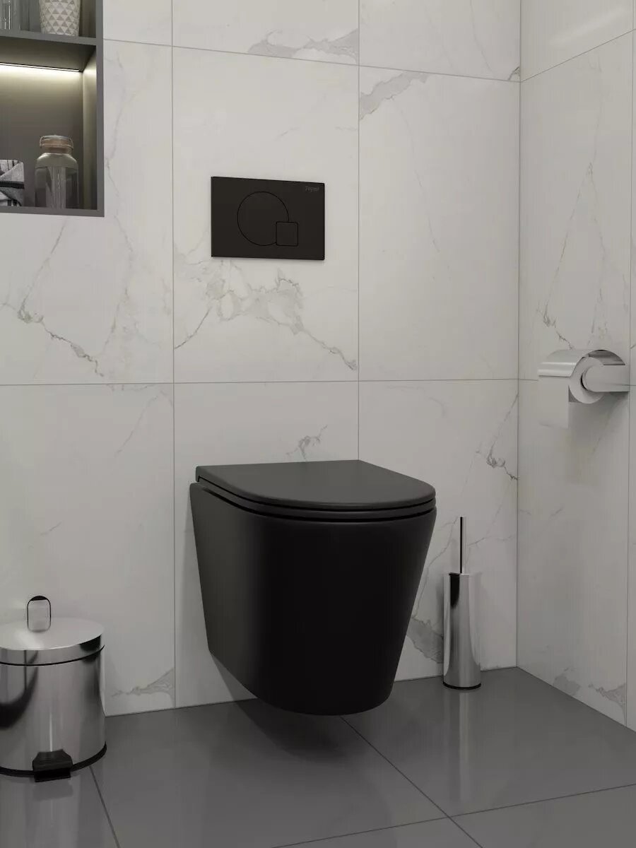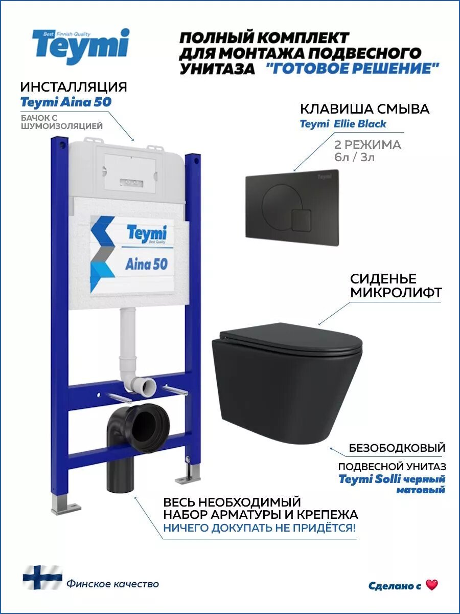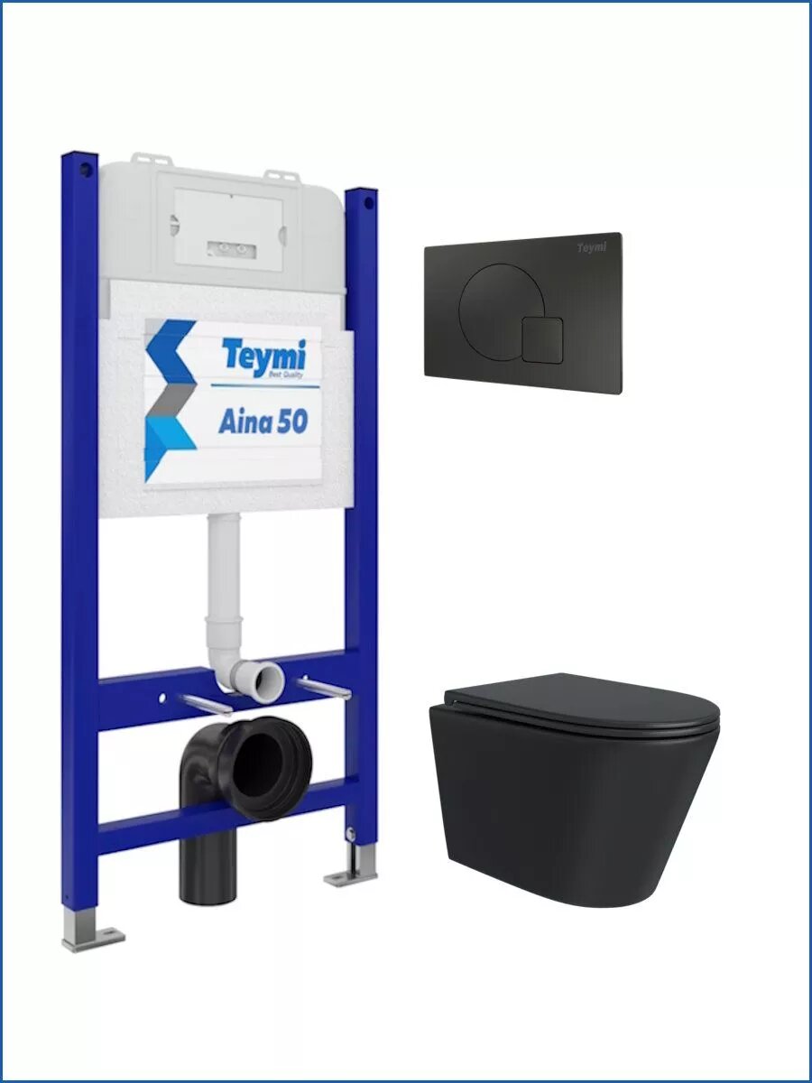 Купить Инсталляция с унитазом комплект 5 в 1 Teymi унитаз подвесной безободковый черный Solli Black кнопка черная F08922 с доставкой по всей России.