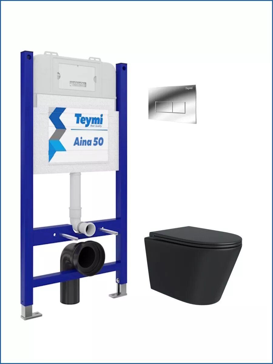 Купить Инсталляция с унитазом комплект 5 в 1 Teymi унитаз подвесной безободковый черный Solli Black кнопка хром F08909 с доставкой по всей России.