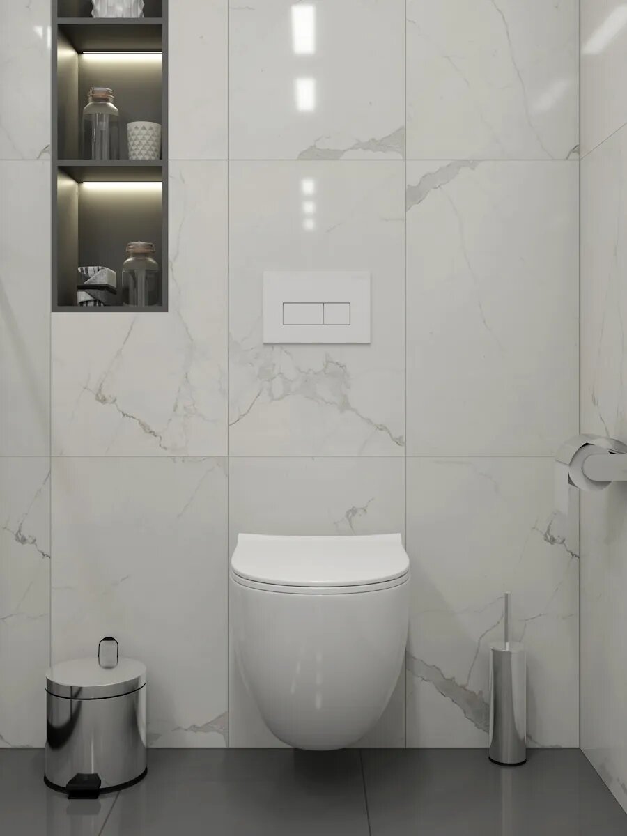 -- цельнолитой бачок скрытого монтажа, обшитый кожухом из пенопласта;