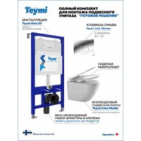 Комплект «Готовое решение» для установки инсталляции TEYMI AINA 52 с подвесным унитазом TEYMI LINA MEDIA T40105 и клавишей TEYMI LINA T70102CH в цвете хром подобран специально для того, чтобы покупателям было проще сориентироваться в огромном выборе товаров для ванной комнаты. Оптимальное сочетание инсталляционной системы, клавиши смыва и подвесного унитаза позволит не задумываясь сделать правильный выбор. Инсталляция для подвесного унитаза от известного финского бренда TEYMI предназначена для оборудования санузлов и выгодно отличается своей надёжностью и простотой установки.