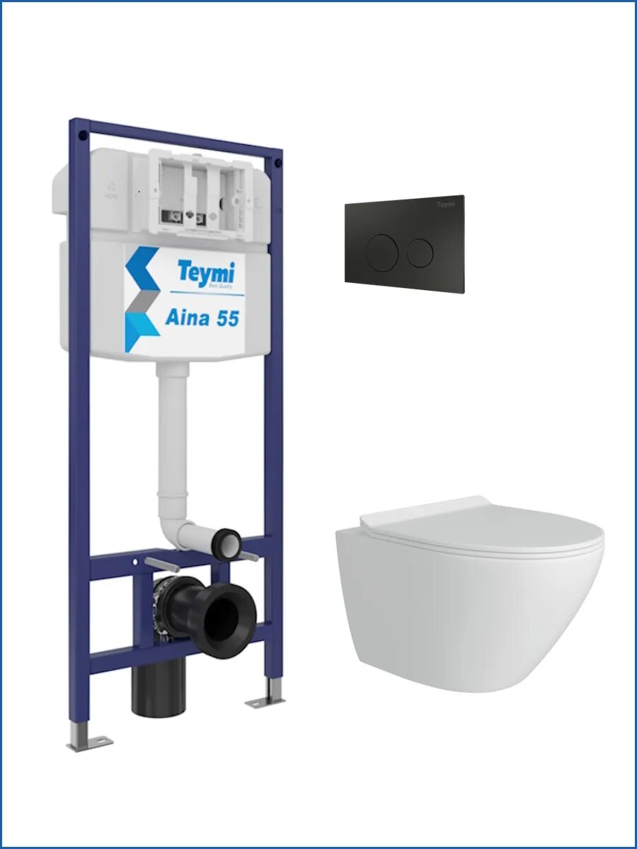 Инсталляция с унитазом комплект 5 в 1 Teymi унитаз подвесной безободковый Lina Pro кнопка черная F13865