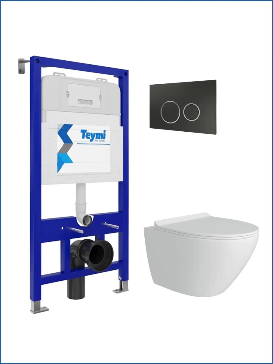 Купить Инсталляция с унитазом комплект 5 в 1 Teymi унитаз подвесной безободковый Lina Pro кнопка черная / хром F13389 с доставкой по всей России.