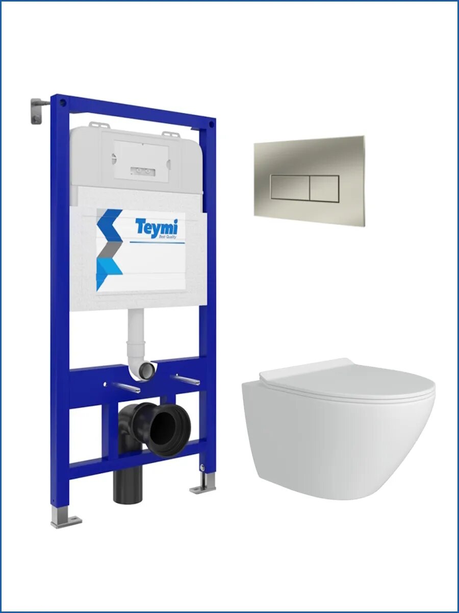 Купить Инсталляция с унитазом комплект 5 в 1 Teymi унитаз подвесной безободковый Lina Pro кнопка нержавеющая сталь F13385 с доставкой по всей России.