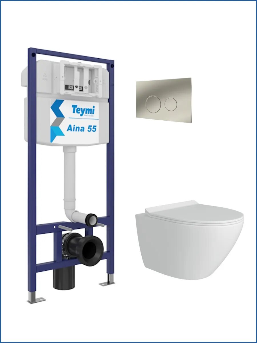 Инсталляция с унитазом комплект 5 в 1 Teymi унитаз подвесной безободковый Lina Pro кнопка нержавеющая сталь F13880