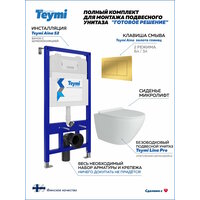 Купить Инсталляция с унитазом комплект 5 в 1 Teymi унитаз подвесной безободковый Lina Pro кнопка золото F16081 с доставкой по всей России.
