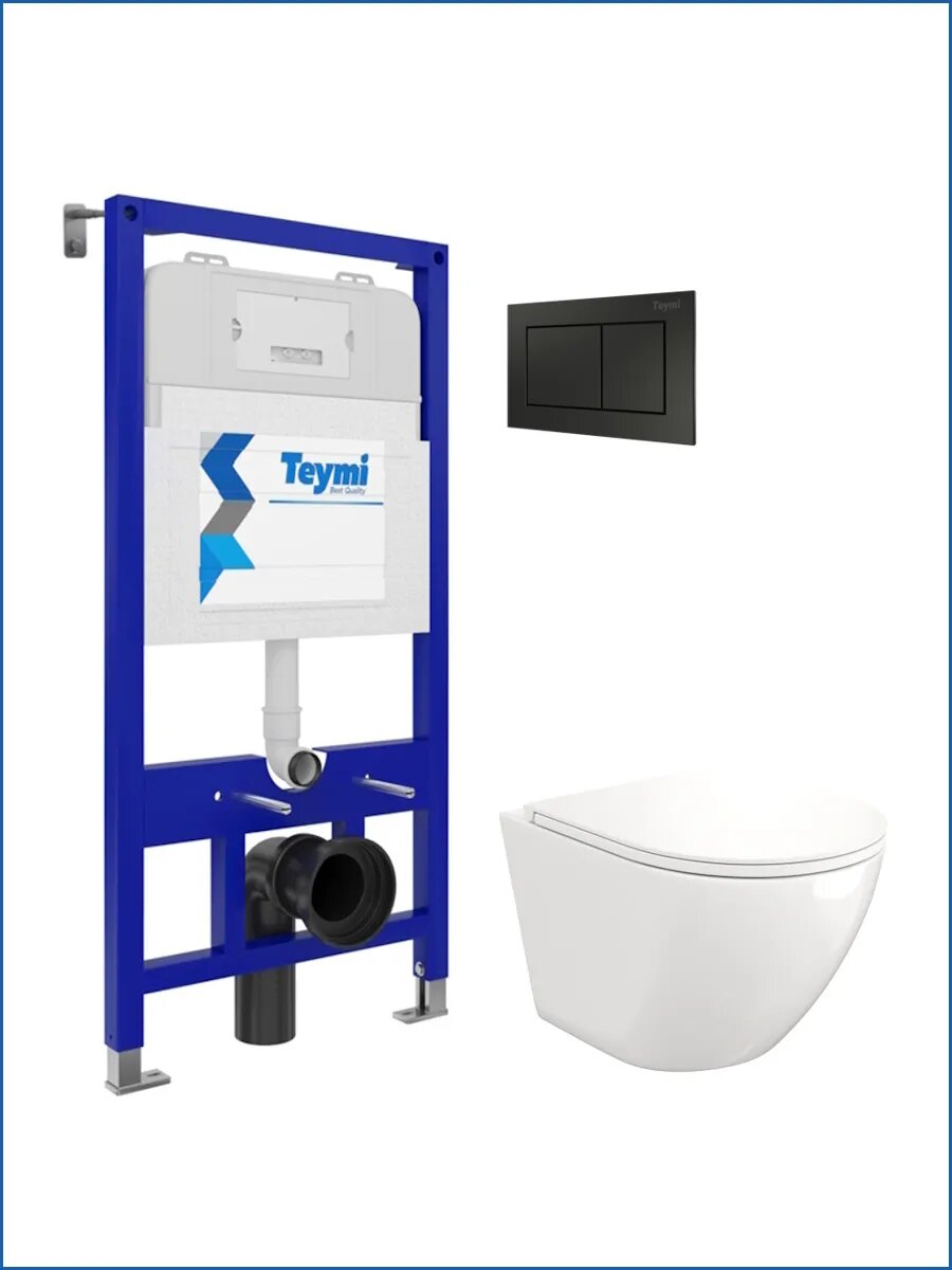 Купить Инсталляция с унитазом комплект 5 в 1 Teymi унитаз подвесной безободковый Lina S кнопка черная T70722 с доставкой по всей России.