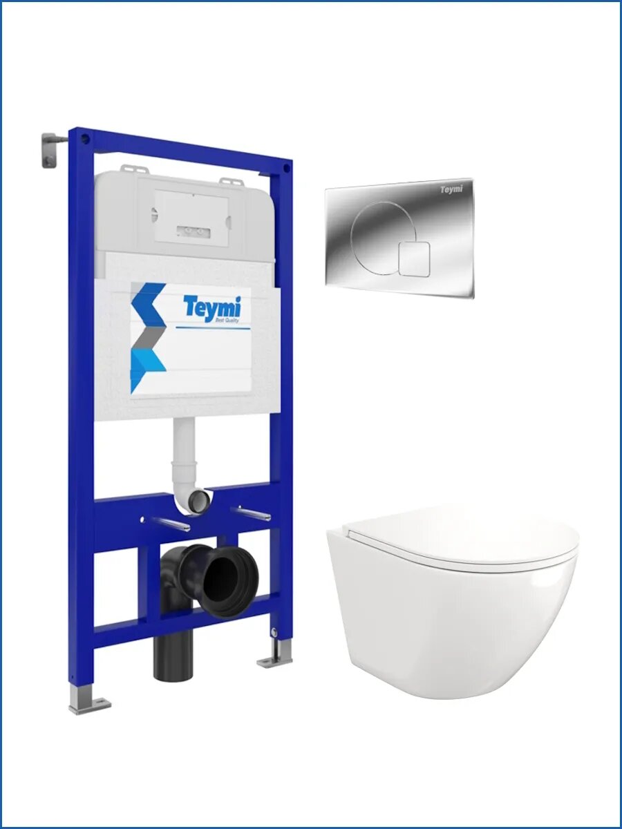 Комплект «Готовое решение» для установки инсталляции с подвесным унитазом включает: -- инсталляция TEYMI AINA 52 T70011 – монтажная рама из стального профиля толщиной 1.5 мм увеличенной ширины 52,5 см с дополнительными вертикальными усиливающими стойками, что позволяет выдерживать нагрузки до 400 кг; -- цельнолитой бачок скрытого монтажа, обшитый кожухом из пенопласта; -- клавиша смыва TEYMI ELLIE T70022CH, цвет хром; -- унитаз подвесной TEYMI LINA S T40102; -- быстросъёмное сиденье с микролифтом; -- полный комплект арматуры для монтажа, включающий в себя уплотнительные кольца и манжеты, трубу смыва, фановый отвод с удлинителем, защитный кожух ревизионного окна с крепежной рамкой, закрывающей панелью и крышкой; -- полный комплект крепежа для установки, а именно: крепеж к стене, шпильки для унитаза, крепежная рамка, соединительные шпильки, толкатели; -- инструкция по установке и обслуживанию. Преимущества комплекта «Готовое решение» для установки инсталляции с подвесным унитазом: -- полная (максимальная) комплектация для установки - больше ничего докупать не придётся; -- все составляющие комплекта идеально подходят друг к другу; -- взаимозаменяемость rкомплектующих; -- рама покрыта суперпрочной порошковой краской с антикоррозионными свойствами; -- высота рамы может регулироваться с ходом до 20 см с помощью ножек, изготовленных из оцинкованной стали; -- сливной бачок скрытого монтажа изготовлен из современных полимерных материалов и является цельнолитым (бесшовным), что позволяет ему работать без протечек в течение всего периода эксплуатации; -- специальный кожух из пенопласта защищает сливной бачок от возникновения конденсата и создаёт дополнительную шумоизоляцию; -- лёгкость обслуживания сливного бачка достигается благодаря удобному ревизионному окну, скрытому за клавишей смыва; -- клавиша смыва имеет две кнопки и работает в режиме эконом / полный (объёмы смыва 3 / 6 литров); -- гарантия на весь комплект составляет 10 лет, а рама прослужит все 50. Комплект «Готовое решение» для установки инсталляции TEYMI AINA 52 с подвесным унитазом TEYMI LINA S T40102 и клавишей TEYMI ELLIE T70022CH в цвете хром подобран специально для того, чтобы покупателям было проще сориентироваться в огромном выборе товаров для ванной комнаты. Оптимальное сочетание инсталляционной системы, клавиши смыва и подвесного унитаза позволит не задумываясь сделать правильный выбор. Инсталляция для подвесного унитаза от известного финского бренда TEYMI предназначена для оборудования санузлов и выгодно отличается своей надёжностью и простотой установки. Уважаемые покупатели, обращаем ваше внимание на то, что система инсталляции TEYMI AINA 52 может быть также укомплектована другими клавишами смыва или подвесными унитазами от бренда TEYMI (вы легко сможете найти их на этом сайте по указанным артикулам). Предлагаем вам рассмотреть варианты сочетания со следующими клавишами: : HELMI хром T70202CH : HELMI черная T70203BM : HELMI белая T70018WM : LINA хром T70102CH : LINA черная T70103BM : LINA белая T70019WM : AINA хром T70012CH : AINA черная T70013BM : AINA белая T70020WM : KATI хром T70701CH : KATI черная T70702BM : KATI белая T70021WM : ELLIE хром T70022CH : ELLIE черная T70023BM : ELLIE белая T70024WM Также просим обратить взгляд на наши лучшие безободковые подвесные унитазы: : SOLLI T40201 : LINA S T40102 : HELMI S T40302 : HELMI VORTEX T40303 : IVA T40601 : ELLIE T40802 : LINA MEDIA T40105 : LORI T40501 : KATI T40701 : HANNA PRO T40901 : HELMI S BLACK T40302MB : VITRA PRO T40806 : VITRA T40804 : DEMI T40208 : LINA VORTEX T40110 : RITTA T40809 : LINA PRO T40106