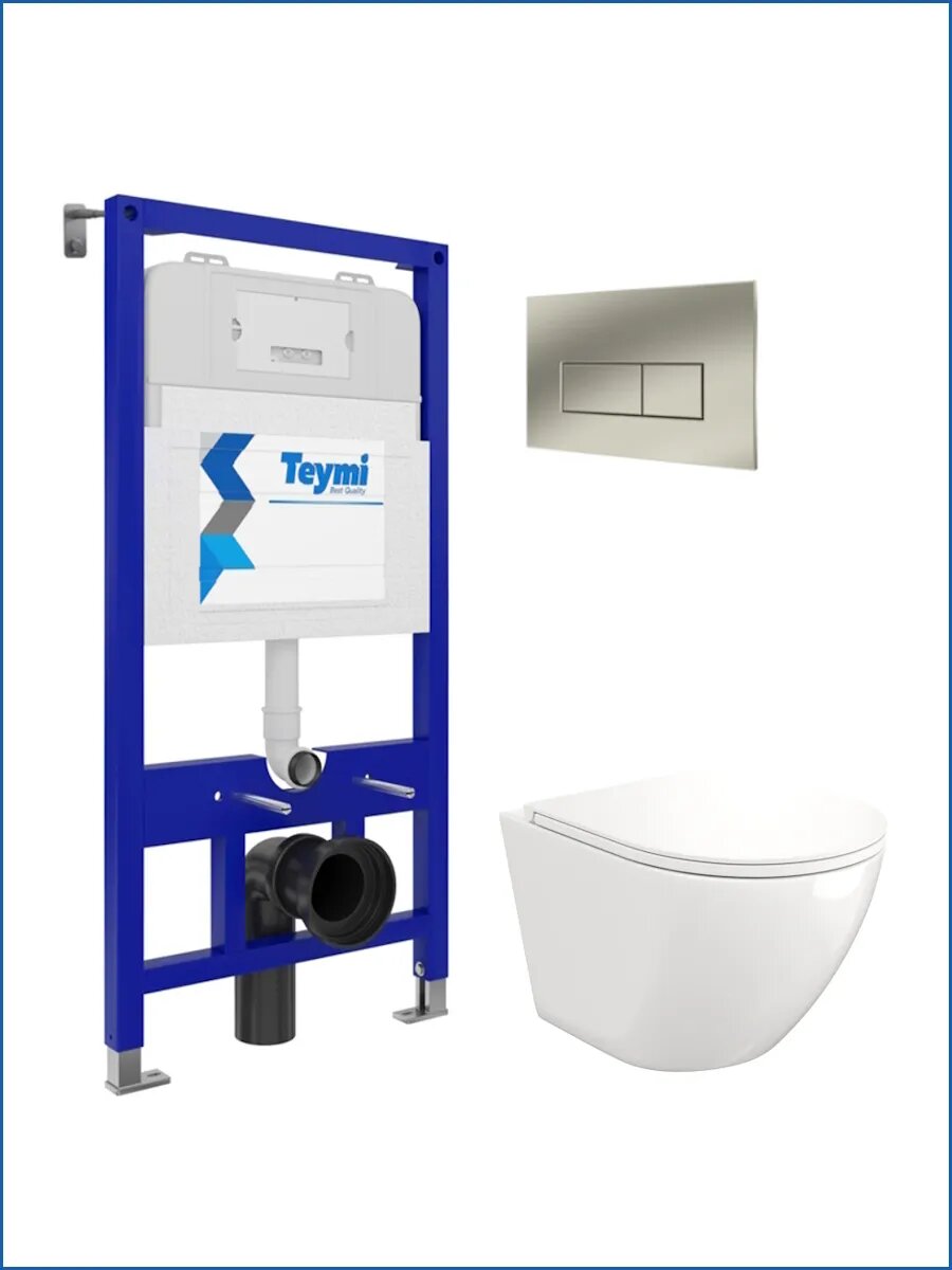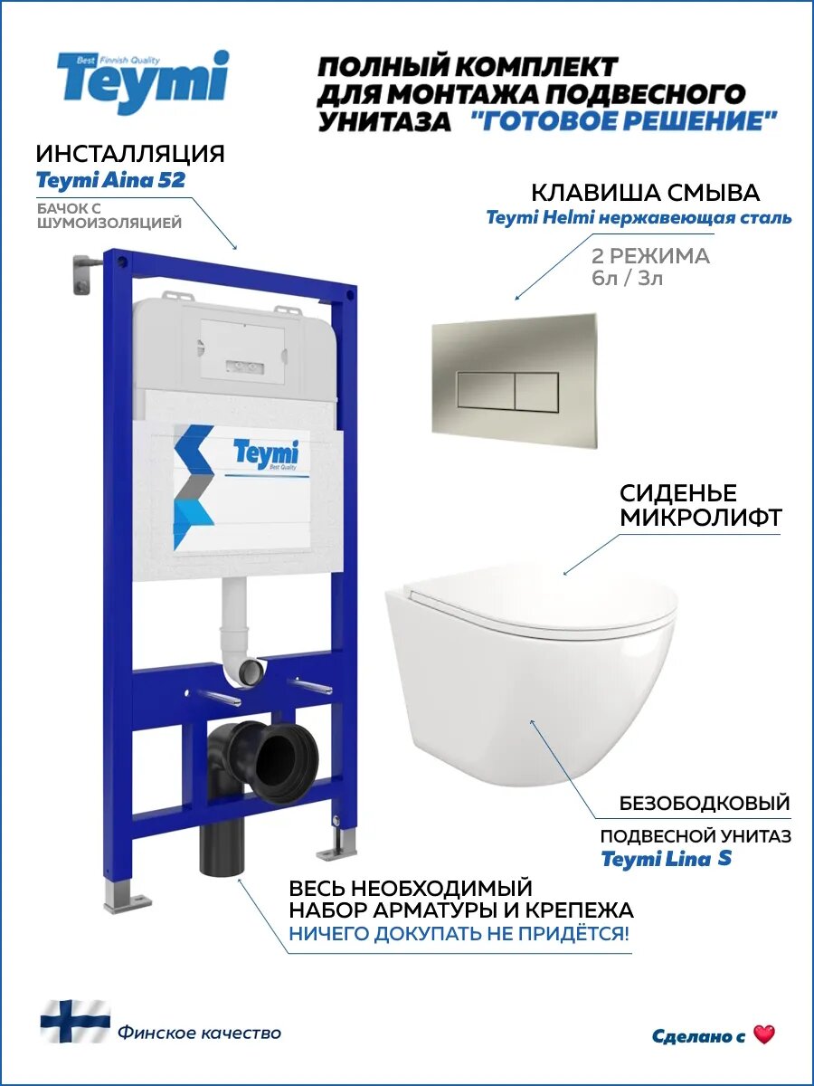 Купить Инсталляция с унитазом комплект 5 в 1 Teymi унитаз подвесной безободковый Lina S кнопка нержавеющая сталь F13287 с доставкой по всей России.