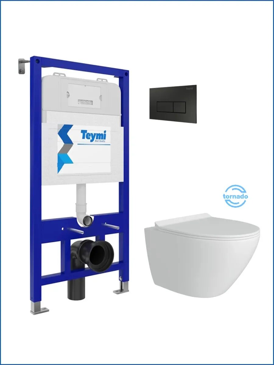 Купить Инсталляция с унитазом комплект 5 в 1 Teymi унитаз подвесной безободковый торнадо Lina Pro Vortex кнопка черная F14449 с доставкой по всей России.