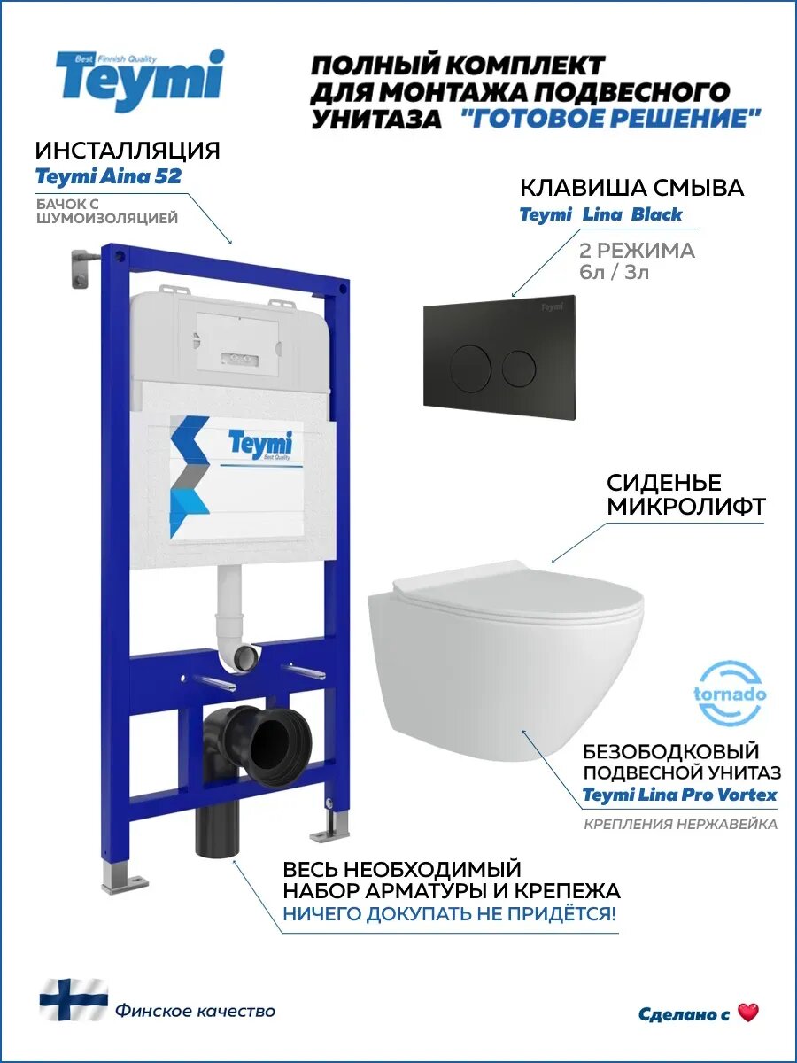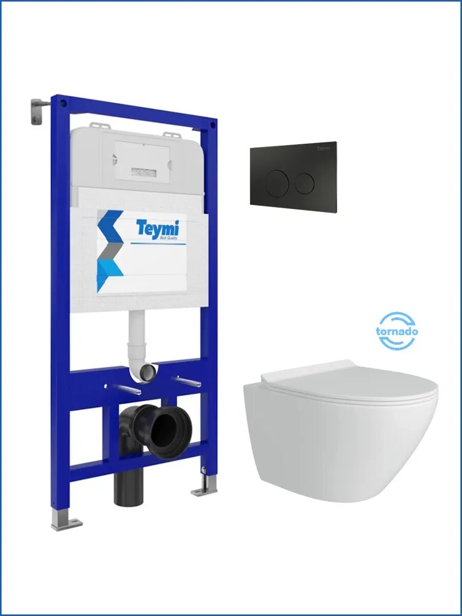 Инсталляция с унитазом комплект 5 в 1 Teymi унитаз подвесной безободковый торнадо Lina Pro Vortex кнопка черная F14455: сравнение цен, характеристики, фото, актуальное наличие и цены.