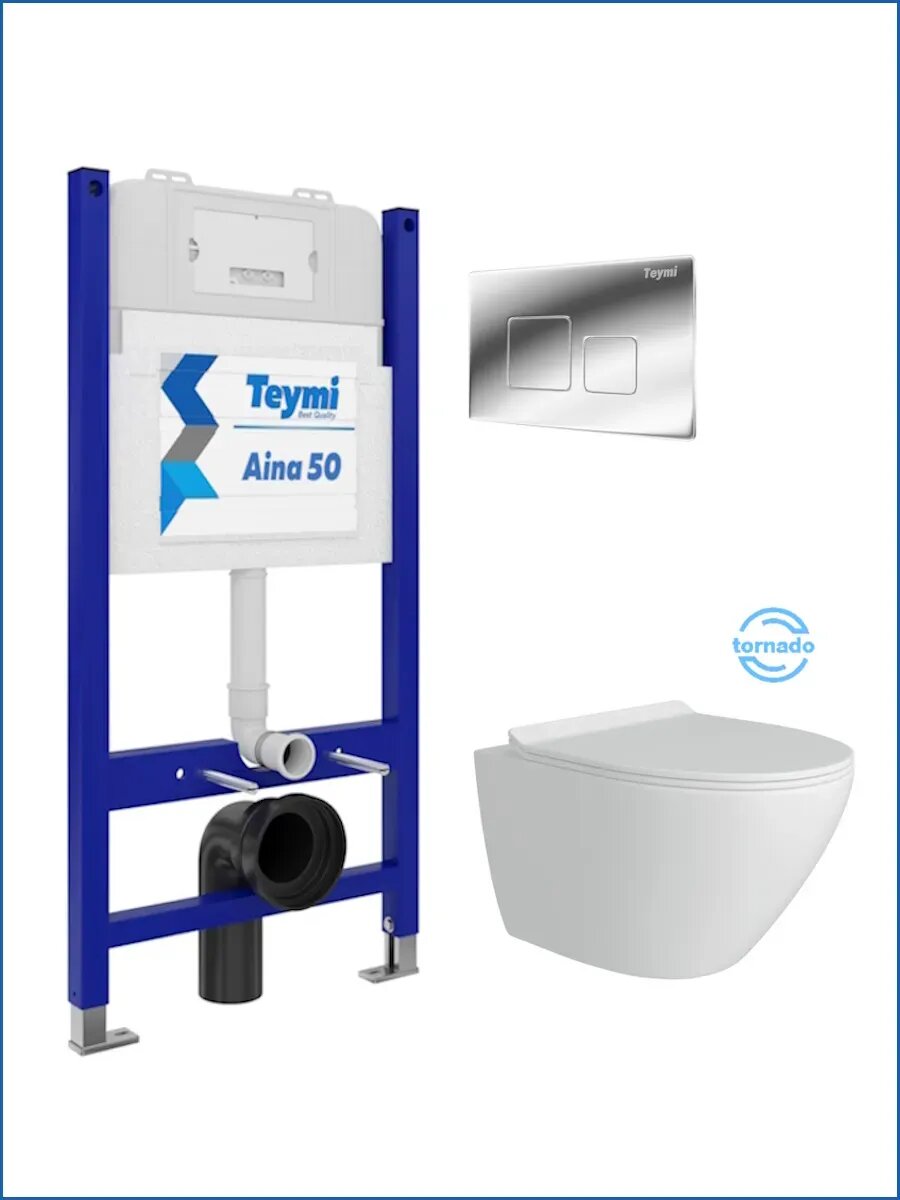 Купить Инсталляция с унитазом комплект 5 в 1 Teymi унитаз подвесной безободковый торнадо Lina Pro Vortex кнопка хром F14486 с доставкой по всей России.