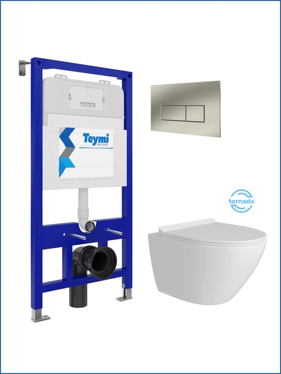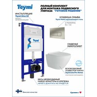 Купить Инсталляция с унитазом комплект 5 в 1 Teymi унитаз подвесной безободковый торнадо Lina Pro Vortex кнопка нержавеющая сталь F14451 с доставкой по всей России.