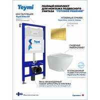 Купить Инсталляция с унитазом комплект 5 в 1 Teymi унитаз подвесной безободковый торнадо Lina Pro Vortex кнопка золото F16090 с доставкой по всей России.