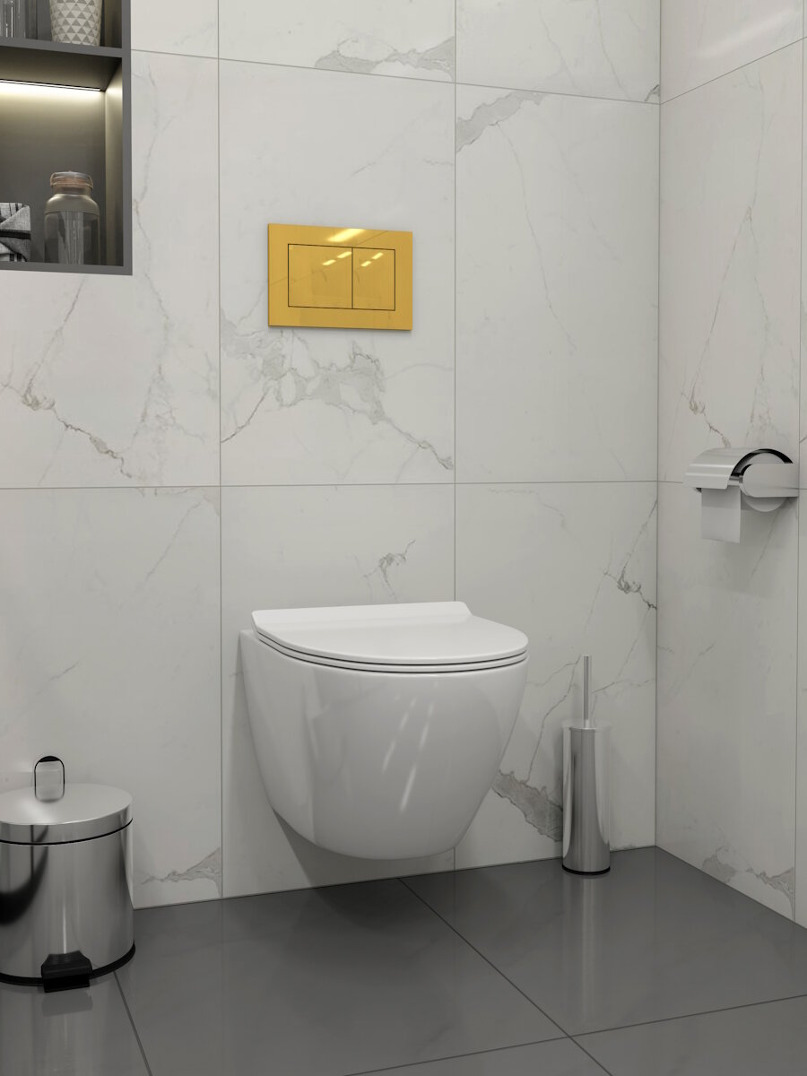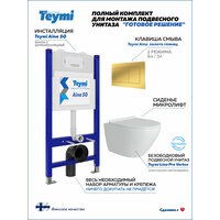 Купить Инсталляция с унитазом комплект 5 в 1 Teymi унитаз подвесной безободковый торнадо Lina Pro Vortex кнопка золото F16091 с доставкой по всей России.