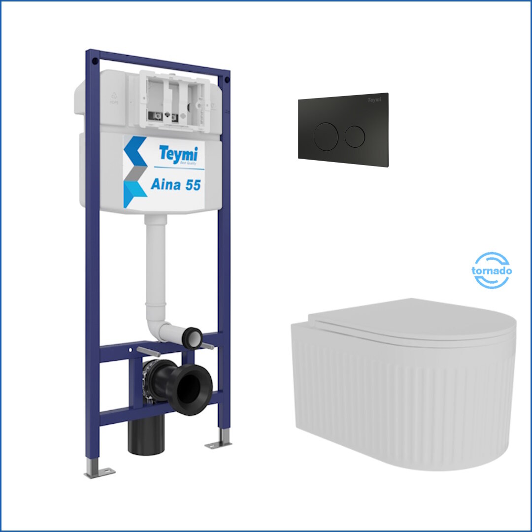 Инсталляция с унитазом комплект 5 в 1 Teymi унитаз подвесной безободковый торнадо Martta Vortex кнопка черная F14565