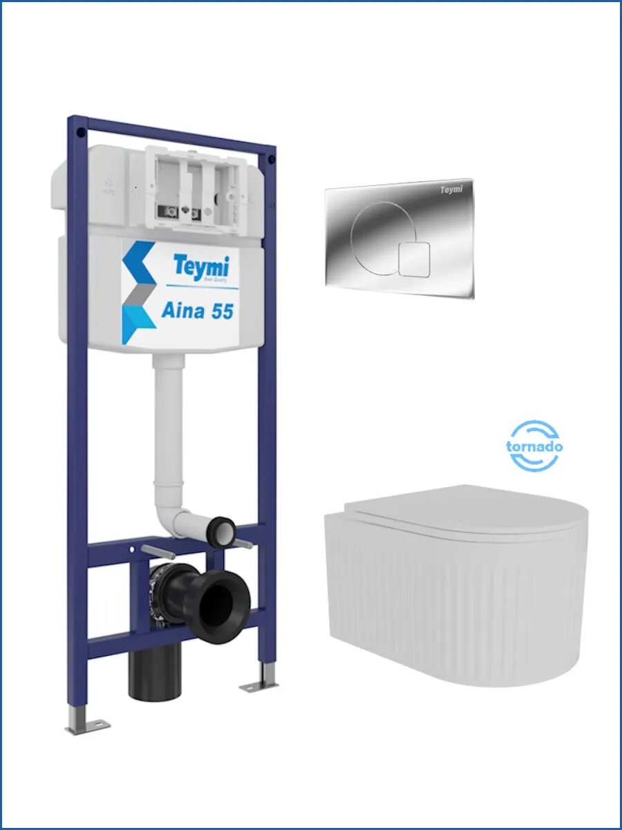 Инсталляция с унитазом комплект 5 в 1 Teymi унитаз подвесной безободковый торнадо Martta Vortex кнопка хром F14577