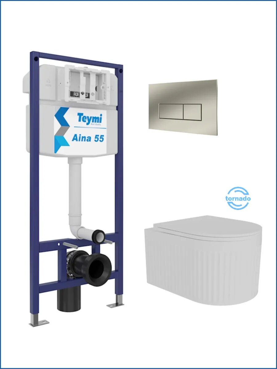 Инсталляция с унитазом комплект 5 в 1 Teymi унитаз подвесной безободковый торнадо Martta Vortex кнопка нержавеющая сталь F14561