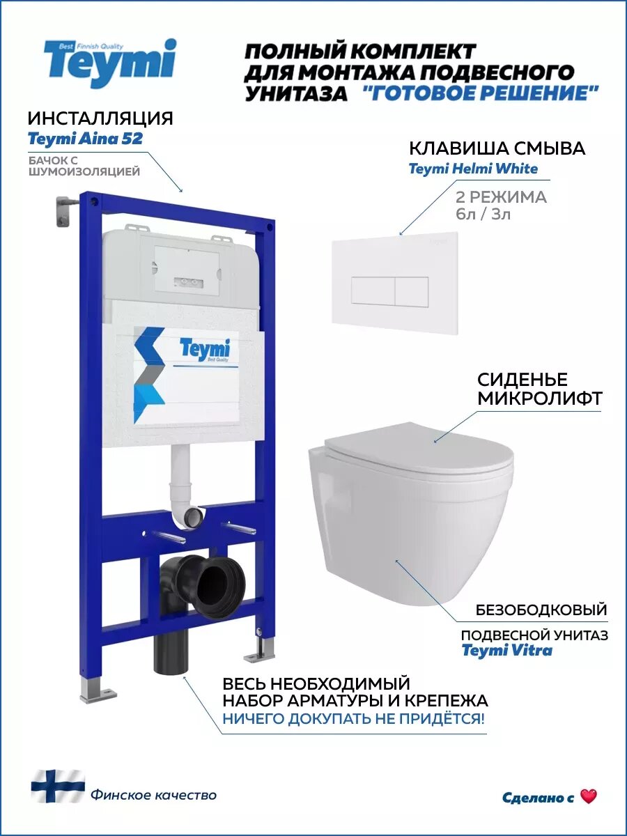 Инсталляция с унитазом комплект 5 в 1 Teymi унитаз подвесной безободковый Vitra кнопка белая F00481: сравнение цен, характеристики, фото, актуальное наличие и цены.