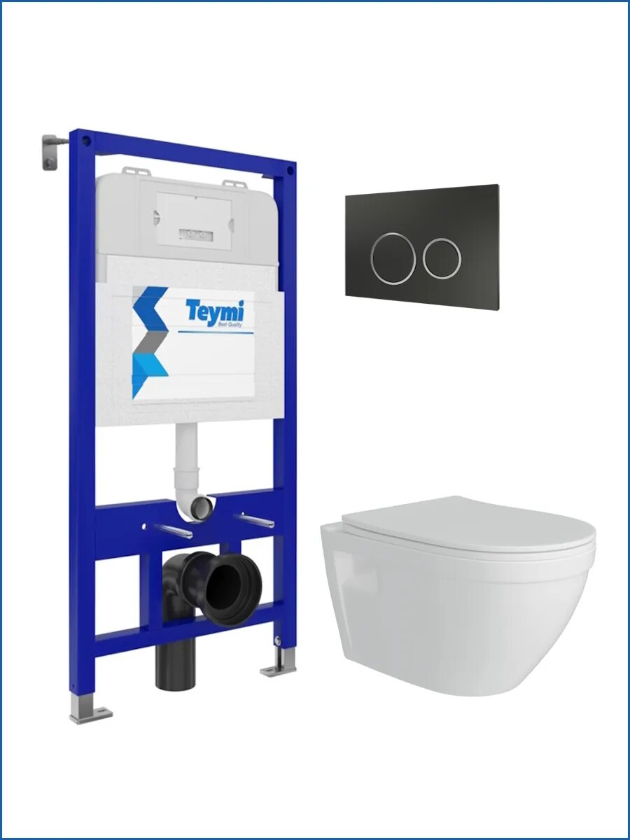 Инсталляция с унитазом комплект 5 в 1 Teymi унитаз подвесной безободковый Vitra кнопка черная / хром F13361: сравнение цен, характеристики, фото, актуальное наличие и цены.