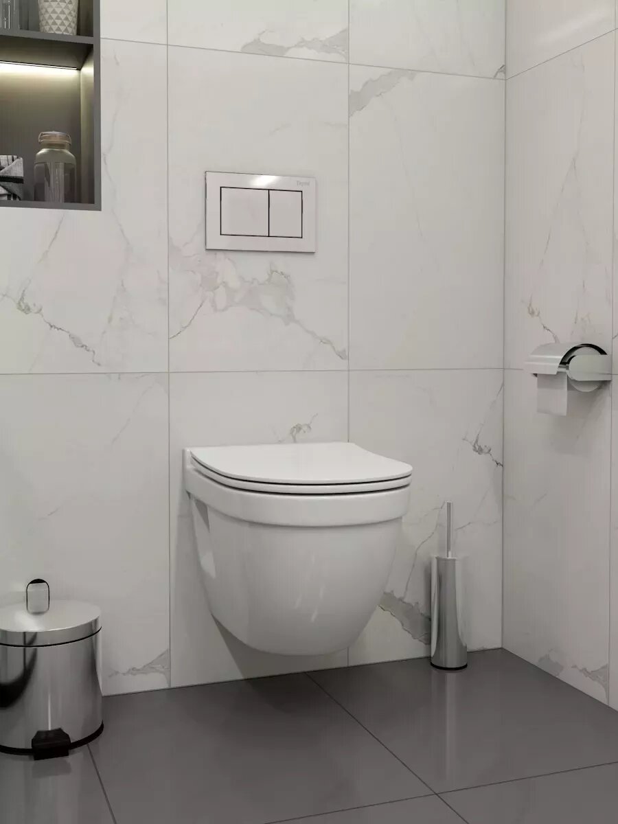 -- цельнолитой бачок скрытого монтажа, обшитый кожухом из пенопласта;