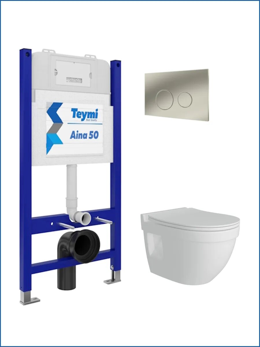Купить Инсталляция с унитазом комплект 5 в 1 Teymi унитаз подвесной безободковый Vitra Pro кнопка нержавеющая сталь F13479 с доставкой по всей России.