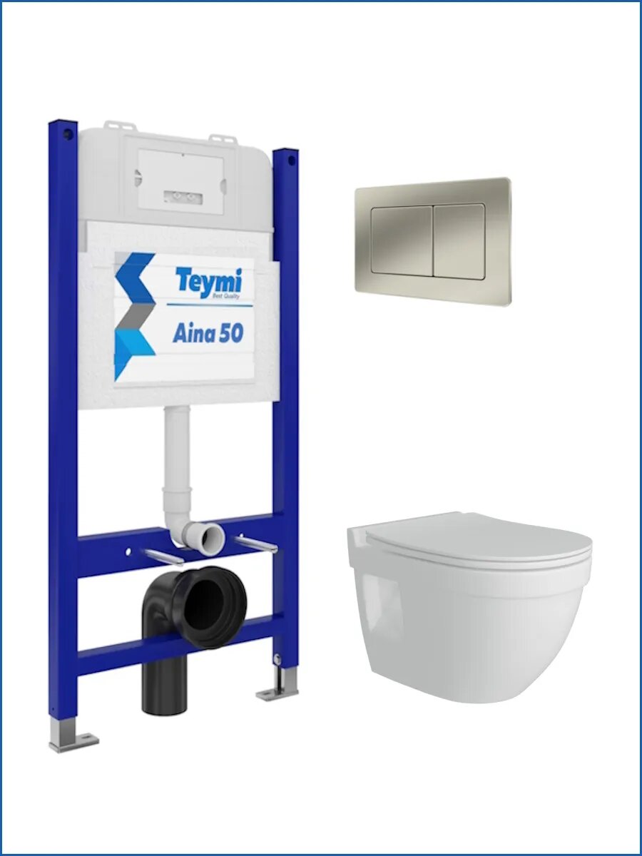 Купить Инсталляция с унитазом комплект 5 в 1 Teymi унитаз подвесной безободковый Vitra Pro кнопка нержавеющая сталь F13482 с доставкой по всей России.
