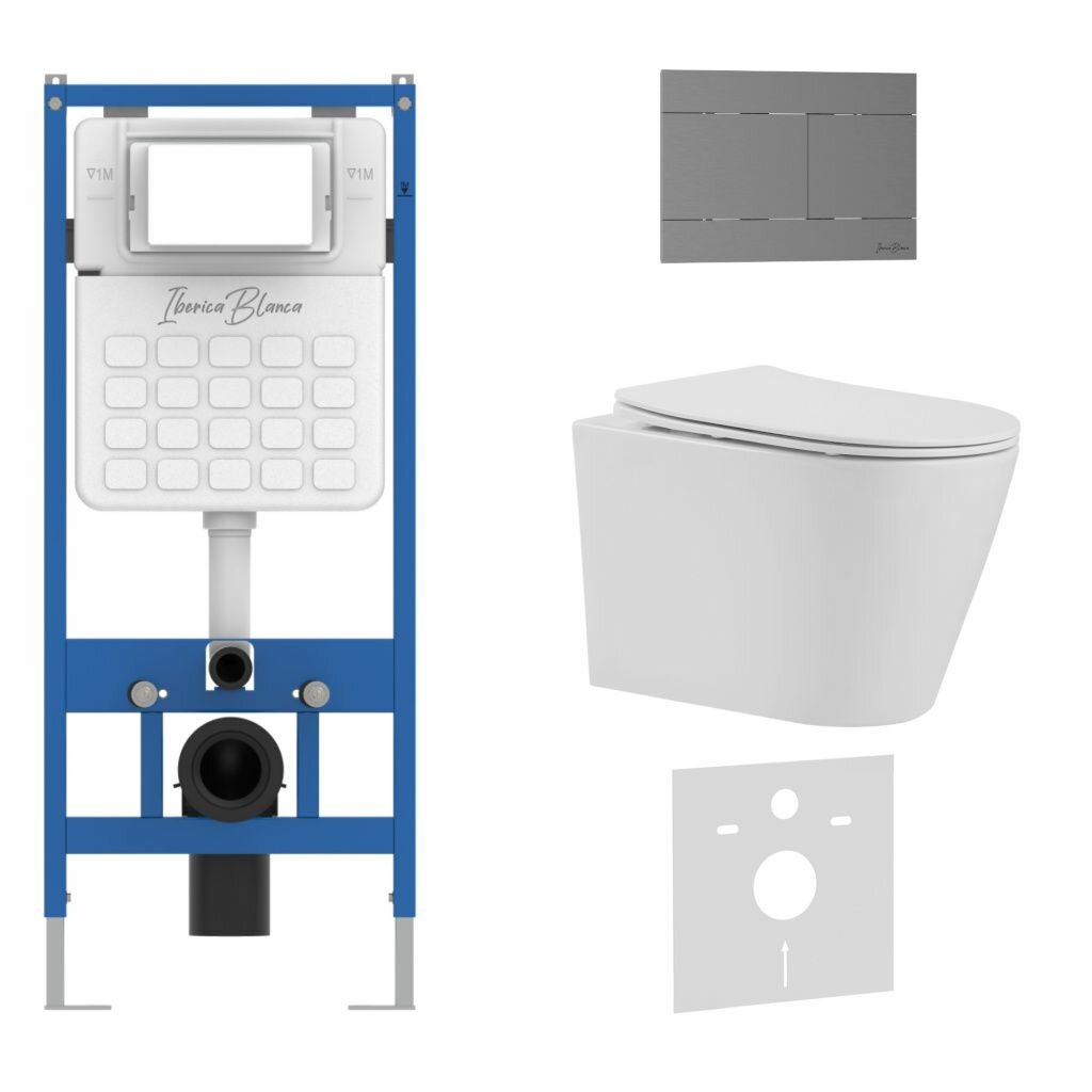 Купить Инсталляция с унитазом комплект 6 в 1, унитаз безободковый белый BURGOS ALTO (IB. BRA.231.1B1), клавиша смыва вороненая сталь, нержавеющая сталь INOX-R (IB. B015.02) с доставкой по всей России.