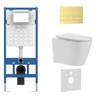 Купить Инсталляция с унитазом комплект 6 в 1, унитаз безободковый белый BURGOS ALTO (IB. BRA.231.1B1), клавиша смыва золото матовое, нержавеющая сталь INOX-S (IB. B016.03) с доставкой по всей России.