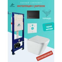 Унитаз Azuma Verano Торнадо 3.0, безободковый, с сиденьем микролифт + инсталляция + кнопка