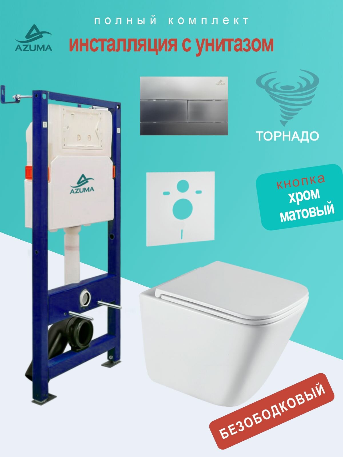 Купить Унитаз Azuma Verano Торнадо 3.0, безободковый, с сиденьем микролифт + инсталляция + кнопка с доставкой по всей России.