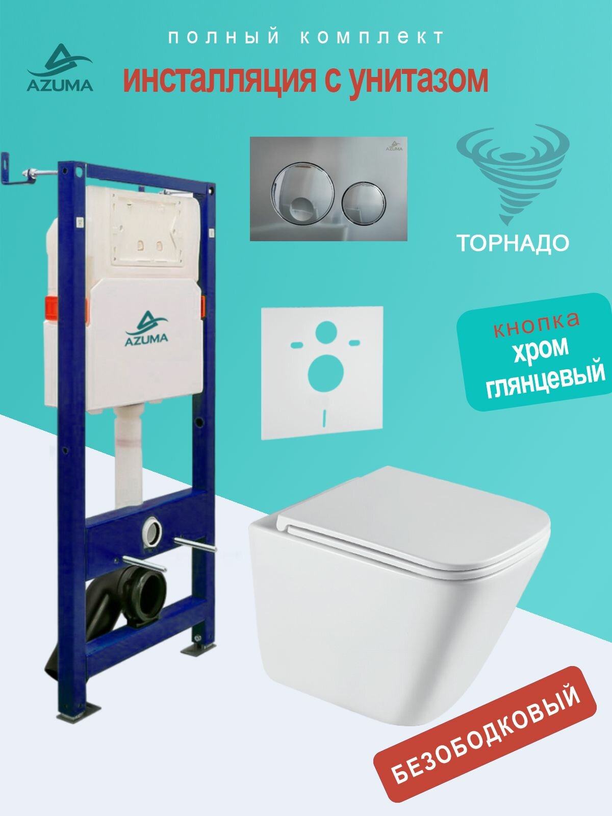 Купить Унитаз Azuma Verano Торнадо 3.0, безободковый, с сиденьем микролифт + инсталляция + кнопка с доставкой по всей России.