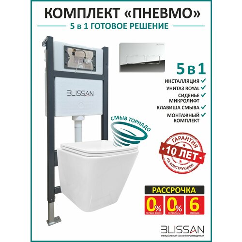Купить Инсталляция с унитазом комплект Blissan ROYAL 5 в 1: BL-IPN-RO-4111-CH, смыв Торнадо с сиденьем микролифт, кнопка хром глянец пневматика с доставкой по всей России.