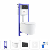 Купить Инсталляция с унитазом в комплекте 7 в 1 Lavinia Boho RelFix 20219185R: безободковый подвесной унитаз торнадо (белый глянец), сиденье микролифт, инсталляция, шумоизоляция, крепление, кнопка, диспенсер с доставкой по всей России.