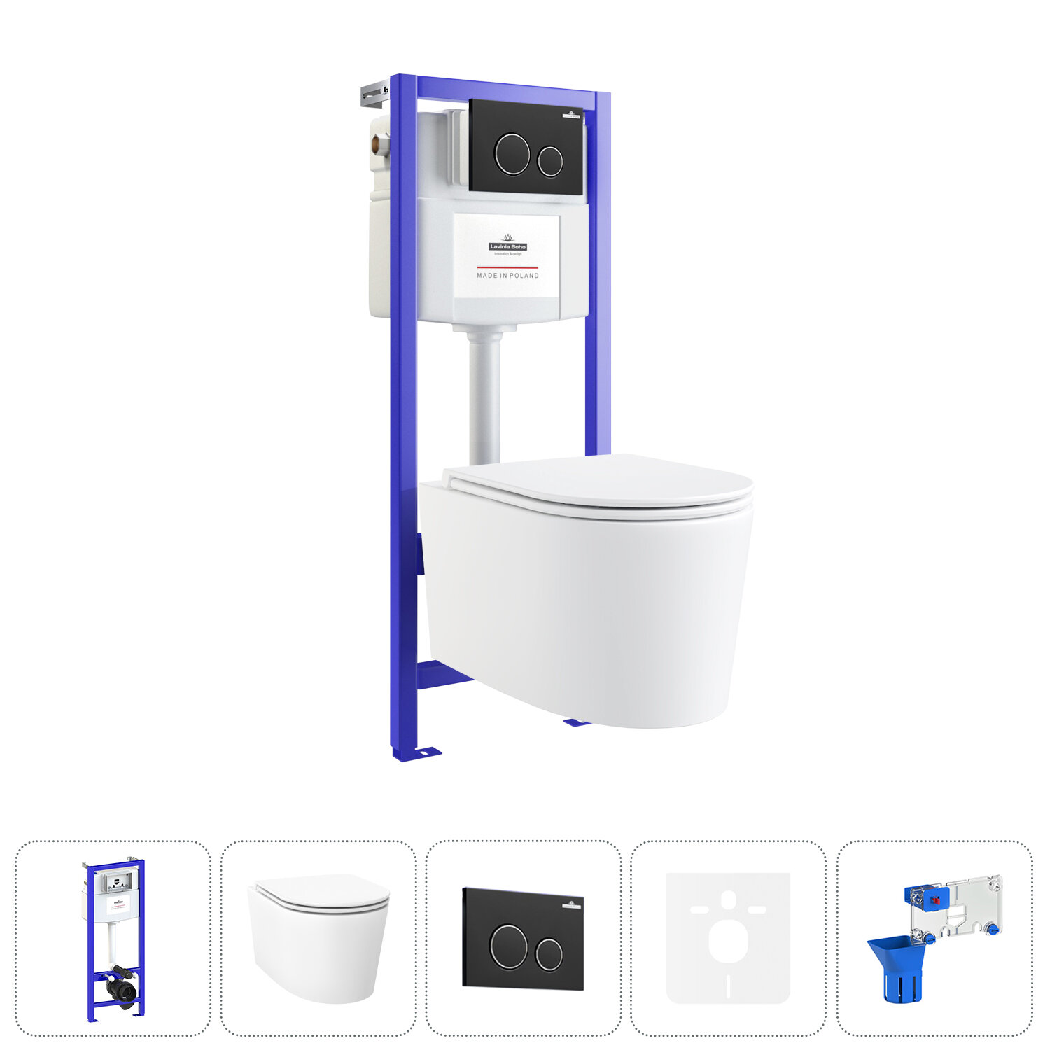 Инсталляция с унитазом в комплекте 7 в 1 Lavinia Boho RelFix 20219185R: безободковый подвесной унитаз торнадо (белый глянец), сиденье микролифт, инсталляция, шумоизоляция, крепление, кнопка, диспенсер: сравнение цен, характеристики, фото, актуальное наличие и цены.