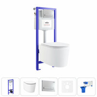 Купить Инсталляция с унитазом в комплекте 7 в 1 Lavinia Boho RelFix 20219187R: безободковый подвесной унитаз торнадо (белый глянец), сиденье микролифт, инсталляция, шумоизоляция, крепление, кнопка, диспенсер с доставкой по всей России.