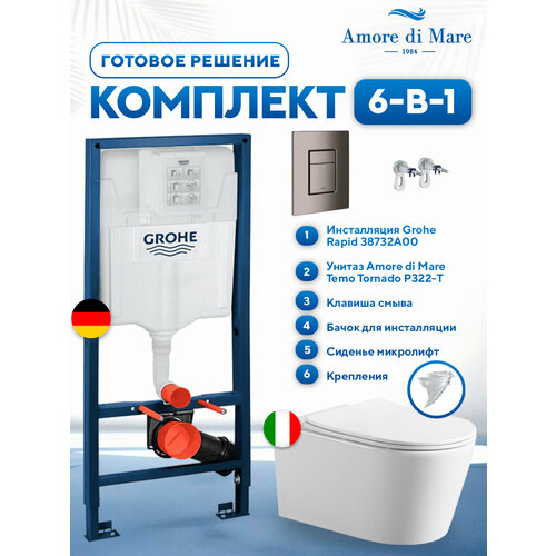 Купить Инсталляция с унитазом6 в 1: инсталляция Grohe38732A00 +унитаз Amore di Mare Temo Tornado P322-T, сиденье микролифт с доставкой по всей России. Инсталляция с унитазом6 в 1: инсталляция Grohe38732A00 +унитаз Amore di Mare Temo Tornado P322-T, сиденье микролифт: сравнение цен, характеристики, фото, актуальное наличие и цены.