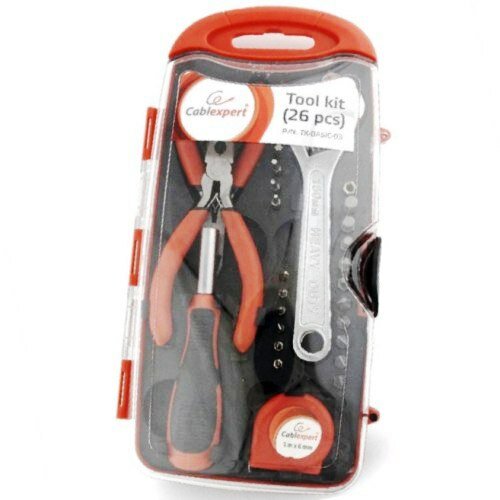 Купить Инструмент Cablexpert TK-BASIC-03 набор отвертка и 20 бит, разводной ключ, плоскогубцы, кусачки, рулетка — 26предметов с доставкой по всей России.