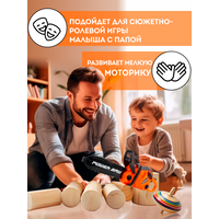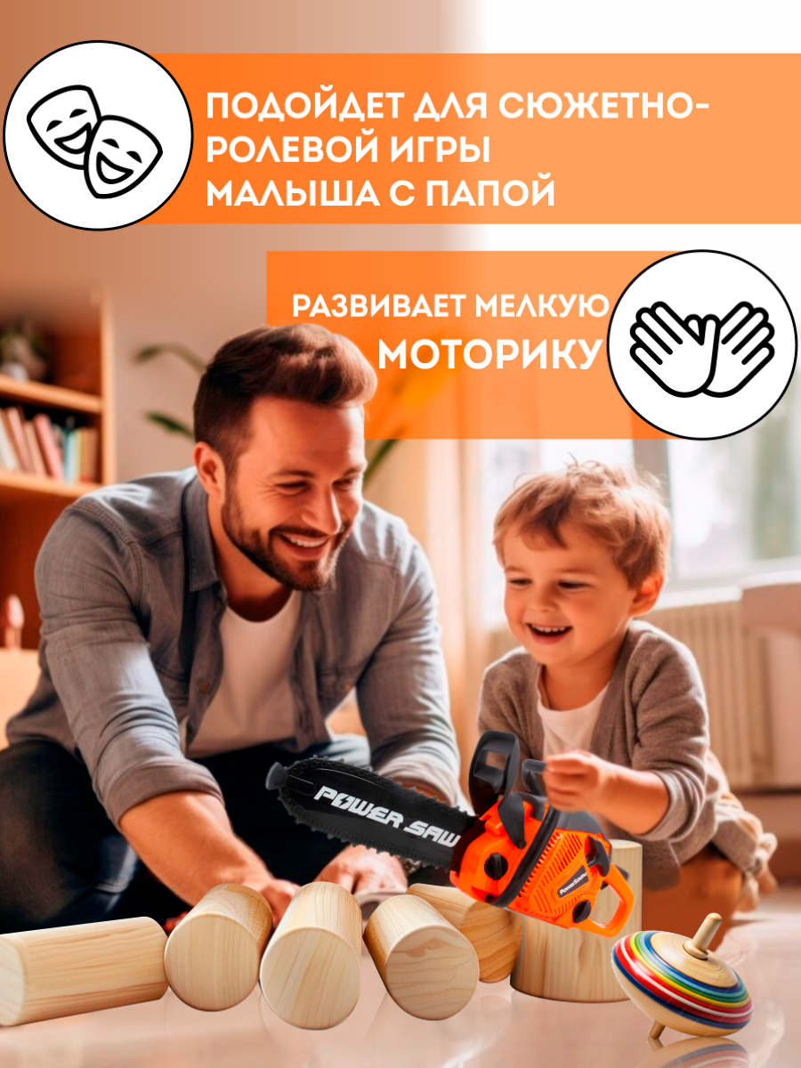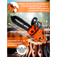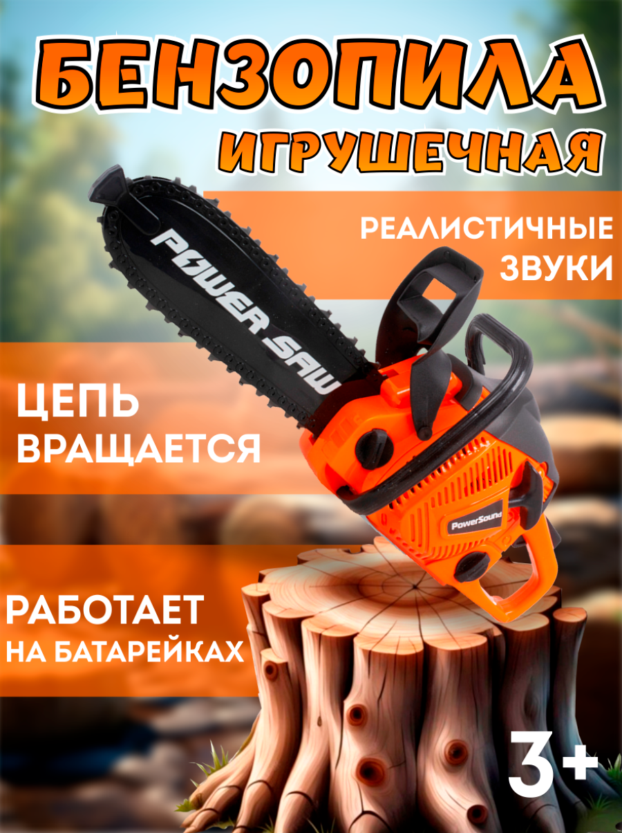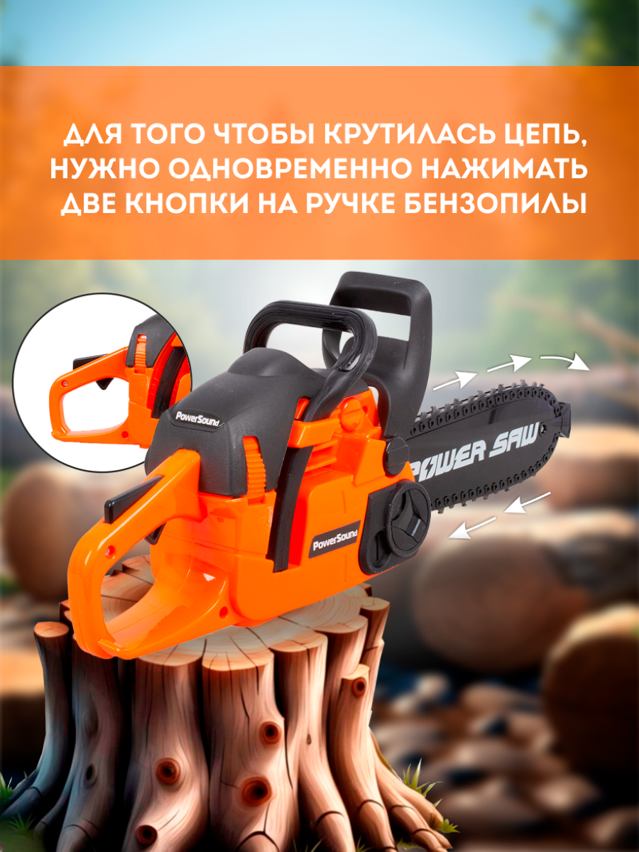 Мальчик с детства любит строить и конструировать? Стать мастером на все руки ему поможет надёжный строительный инструмент детская бензопила. Эта игрушка совсем как настоящая и при этом абсолютно безопасна. Теперь малыш будет помогать папе, представляя, как пилит дрова для печки или камина. Сюжетно-ролевая игра не только развлечёт ребёнка, но и разовьёт его мелкую моторику. Чтобы запустить бензопилу, нужно потянуть вверх рычаг сбоку, после чего нажать на кнопку на ручке. Для того чтобы крутилась цепь, нужно одновременно нажимать две кнопки на ручке бензопилы. После запуска пилы цепь начнет вращаться, издавая характерные реалистичные звуки. Игрушка работает от 3-х батареек типа AA алкалиновых батареек (в комплект не входят). Внимание! Игрушка работает только от алкалиновых батареек! Упаковка: коробка.