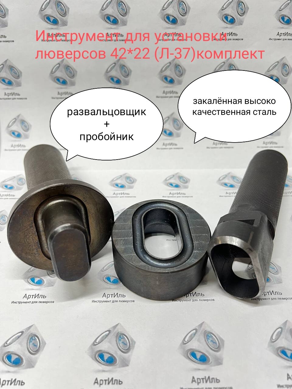 Наш профессиональный инструмент для установки люверсов с внутренним диаметром 42*22 мм (Л-37) - это именно то, что вам необходимо для удобной и быстрой установки люверсов. Комплект поставки включает матрицу наковальню, развальцовщик, пробойник. Обеспечивающие превосходную точность и качество установки люверсов. В плотном материале таком как тент, ткань или например пластик. Перед установкой люверса нужно прорубить или прорезать отверстие пробойником. Наковальня должна находиться на ровной горизонтальной, не пружинящей поверхности, потом установить на наковальню основную часть люверса, сверху, надеть материал, далее установить на основание стопорное кольцо, потом развальцовщик сверху помещается в отверстие люверса и бьете молотком несколько раз до полной установки. Вы ищете эффективный и надежный инструмент для установки люверсов 42*22? У нас есть то, что нужно! При правильной установке, люверс будет крепко держаться в материале. Инструмент для установки люверсов 42*22 мм может использоваться в различных отраслях, таких как производство спецодежды, изготовление рекламных баннеров, производство автомобильных тентов, мягких окон, а также для установки люверсов в кожаные изделия и другие изделия из текстиля. Этот инструмент предназначен для профессионального использования, облегчает и ускоряет процесс установки люверсов, что повышает эффективность работы.