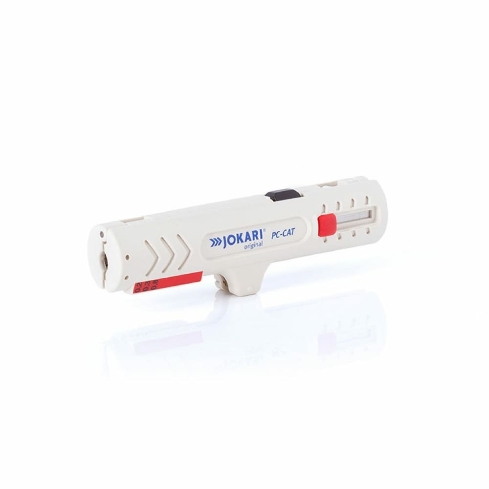 Инструмент для снятия изоляции JOKARI PC-CAT лезвие с покрытием TIN, артикул - 30161 Предназначен для удаления изоляции с CAT- и сетевого кабеля с ПВХ изоляцией диаметром от 4,5 до 10 мм, а так же CAT 5, CAT 6, CAT 7 и витая пара.